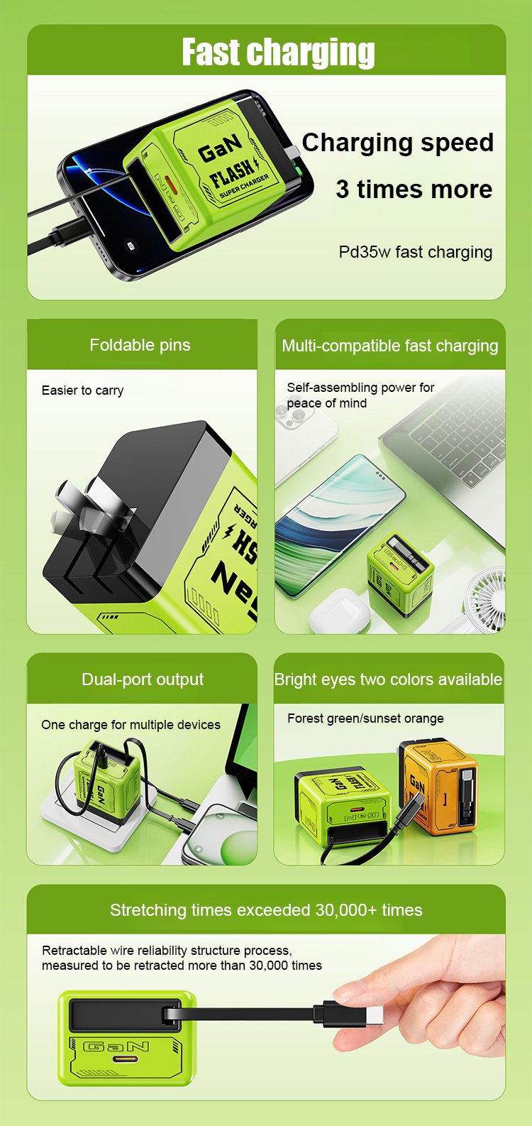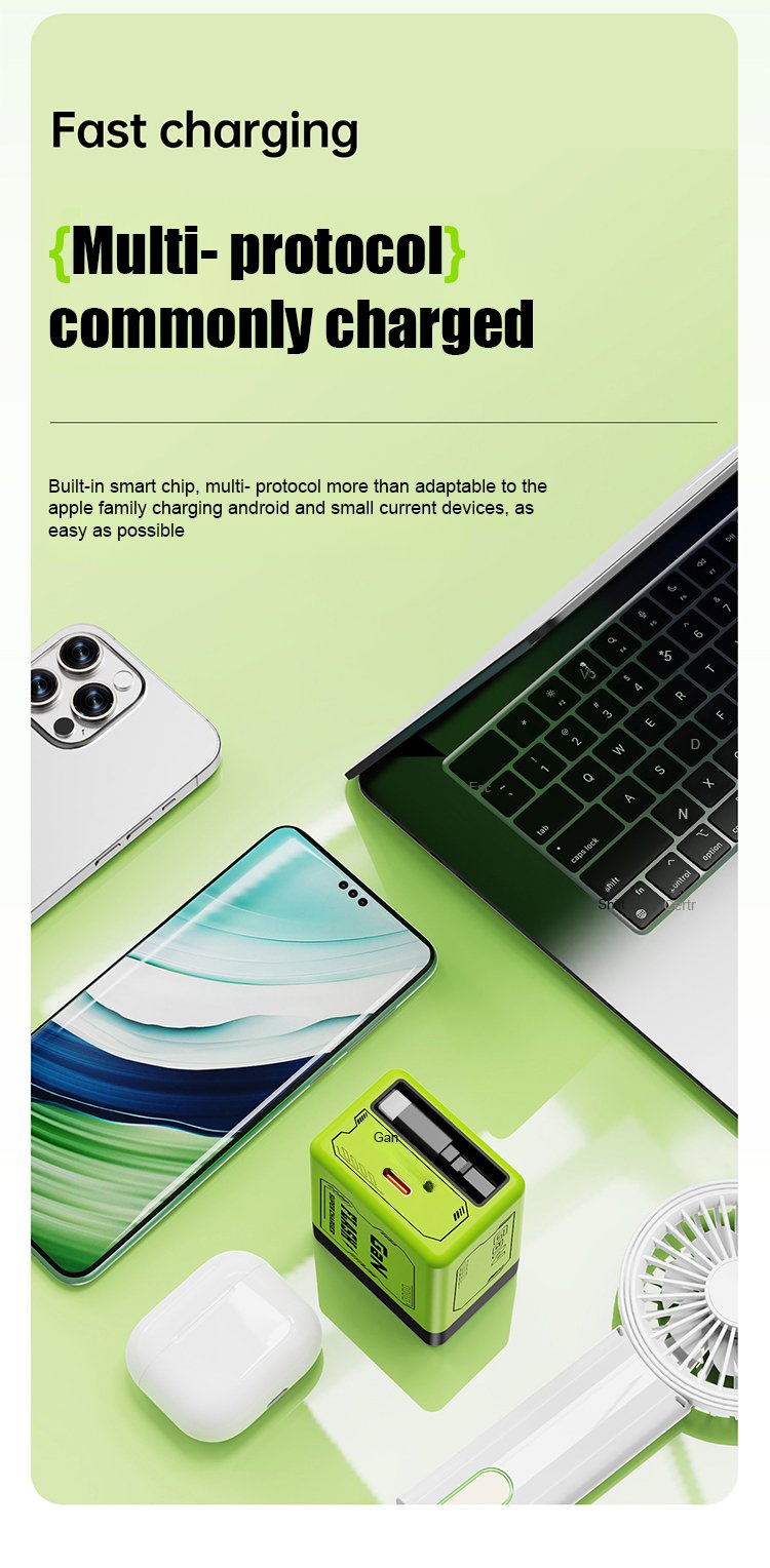 Comes with retractable data cable and plug for fast charging